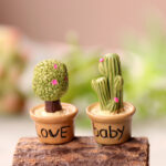 Charming 7-piece resin cactus and succulent set with fun words like “Love” and “Happy Flower” on pots. Perfect for mini gardens, desks, and fairy decor.