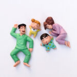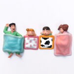 Adorable 4-piece set featuring Shinchan and his family tucked in bed, a must-have collectible for fans and décor lovers.